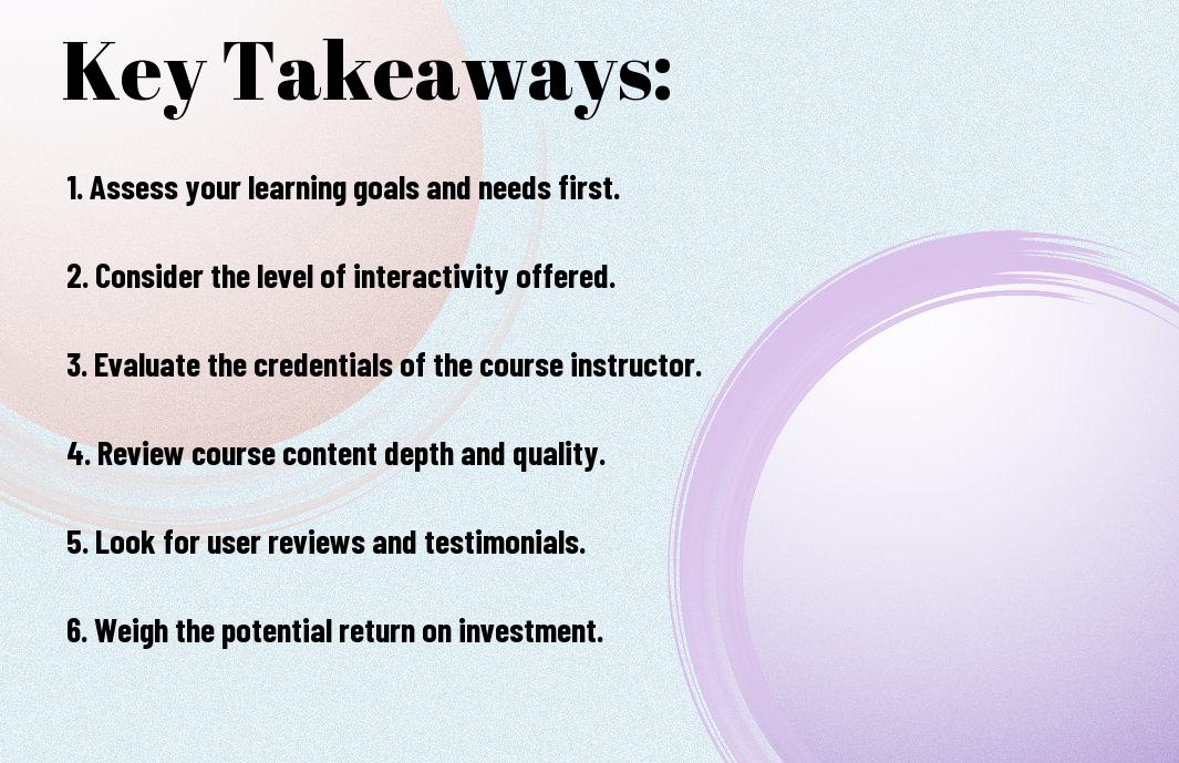 As you consider furthering your education, you face a multitude of online courses, each promising to enhance your skills and knowledge. To make an informed decision, you must carefully evaluate your options. When selecting an online course, you should consider several factors to ensure it aligns with your educational and career goals. For more insights, you can explore discussions on what factors to consider when choosing an online course that suits your needs, and then make a decision that benefits your future.