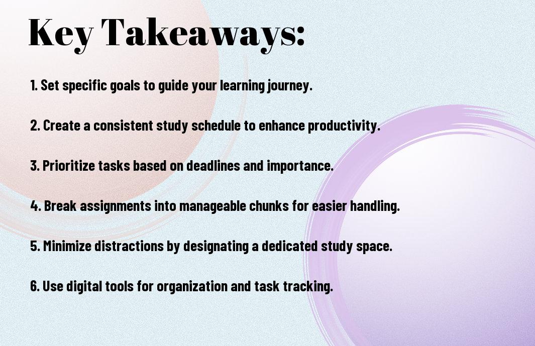 As you launch on your online learning journey, you will need to develop effective time management skills to achieve your goals. Your success depends on your ability to balance study time with other responsibilities. You will have to prioritize tasks, set realistic goals, and avoid distractions to stay on track. By implementing a few simple strategies, you can maximize your productivity and make the most of your online learning experience, helping you to stay focused and motivated throughout your course.